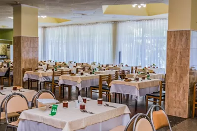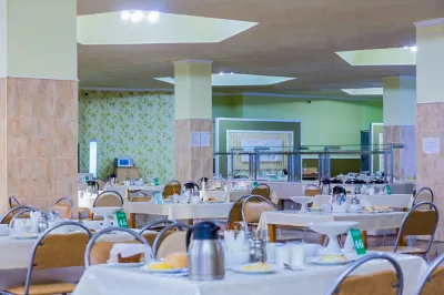 Меню разрабатывается на основе семидневного графика, обеспечивающего разнообразный и максимально полезный продуктовый состав. Отдыхающим остаётся лишь выбрать желаемые блюда по системе Меню-Заказ на следующий день, а также дополнить свой рацион продуктами, предлагаемыми по системе шведского стола. В здравнице действует два обеденных зала. В каждом из них создана уютная и комфортная обстановка, присутствует удобная мебель, выполнен качественный ремонт.